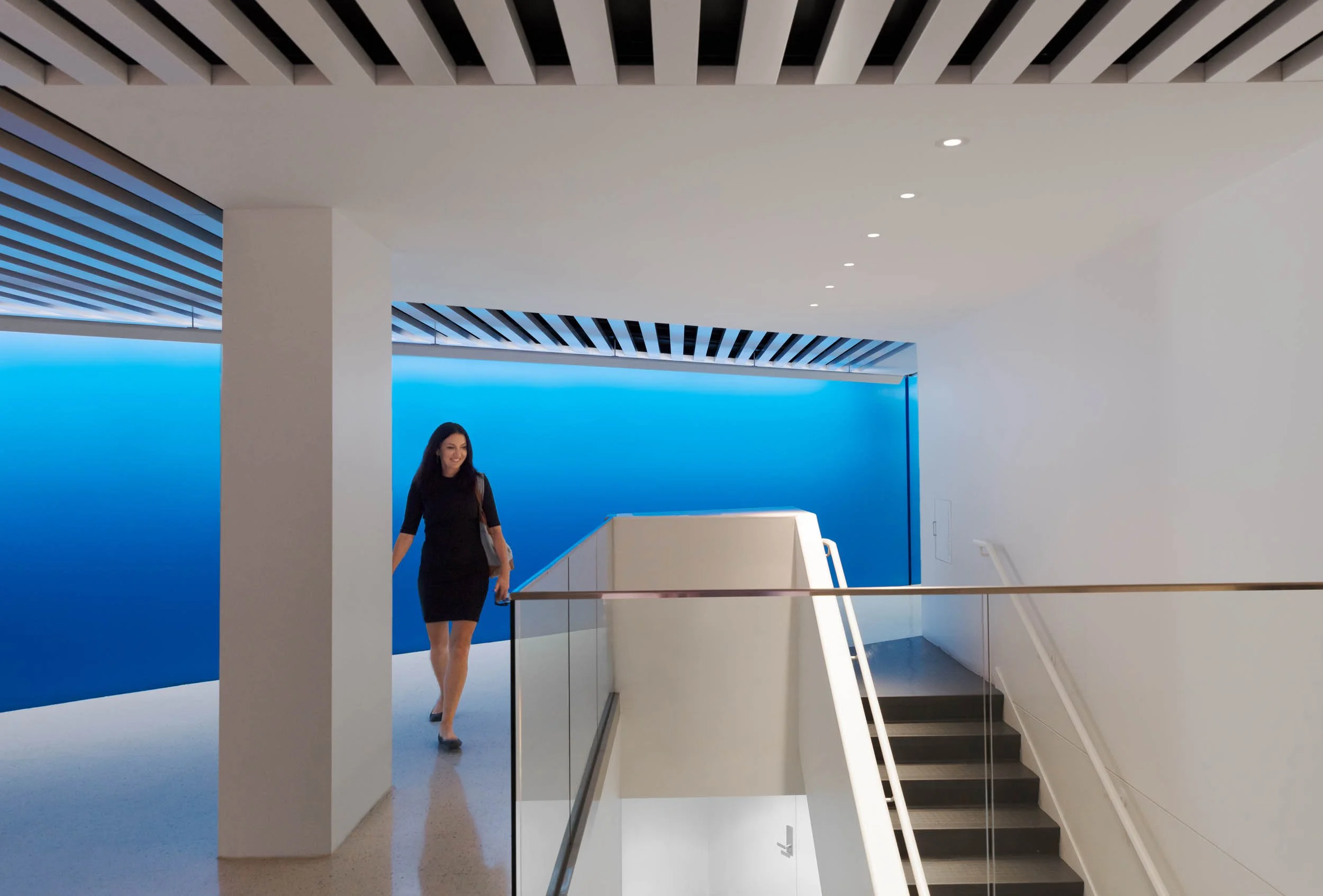 For the new extension, TM Light utilized the architecture itself as a source and illuminating canvas for the interiors. The primary ambient light source is made of a composition of the light from two large skylights, art walls, under- bench lighting, and indirect lighting from the entry vestibule volume. Because of this, the lighting takes on a kind of ethereal quality, floating throughout and simply attaching itself to surfaces that are already meant to receive it; the source of light is completely subdued.